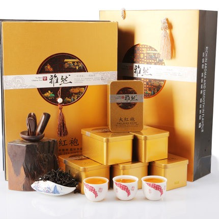 大红袍,产于福建武夷山,属乌龙茶,品质优异。中国特种名茶。其外形条索紧结,色泽绿褐鲜润,冲泡后汤色橙黄明亮,叶片红绿相间。品质最突出之处是香气馥郁有兰花香,香高而持久,“岩韵”明显。除与一般茶叶具有提神益思,消除疲劳、生津利尿、解热防暑、杀菌消炎、解毒防病、消食去腻、减肥健美等保健功能外,还具有防癌症、降血脂、抗衰老、等特殊功效。大红袍很耐冲泡,冲泡七、八次仍有香味。品饮“大红袍”茶,必须按“工夫茶”小壶小杯细品慢饮的程式,才能真正品尝到岩茶之颠的禅茶韵味。注重活 、甘、清、香。